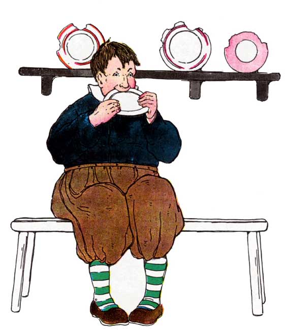 Pussy-cat ate the dumplings, the dumplings, Pussy-cat ate the dumplings. Mamma stood by, and cried, "Oh, fie! Why did you eat the dumplings?" |