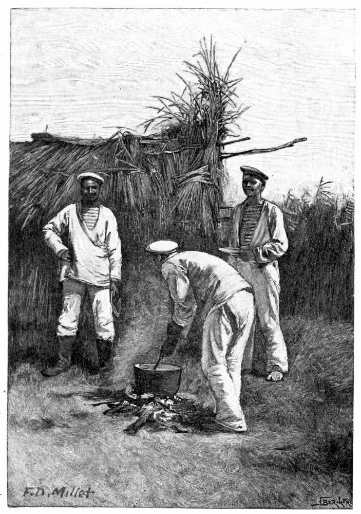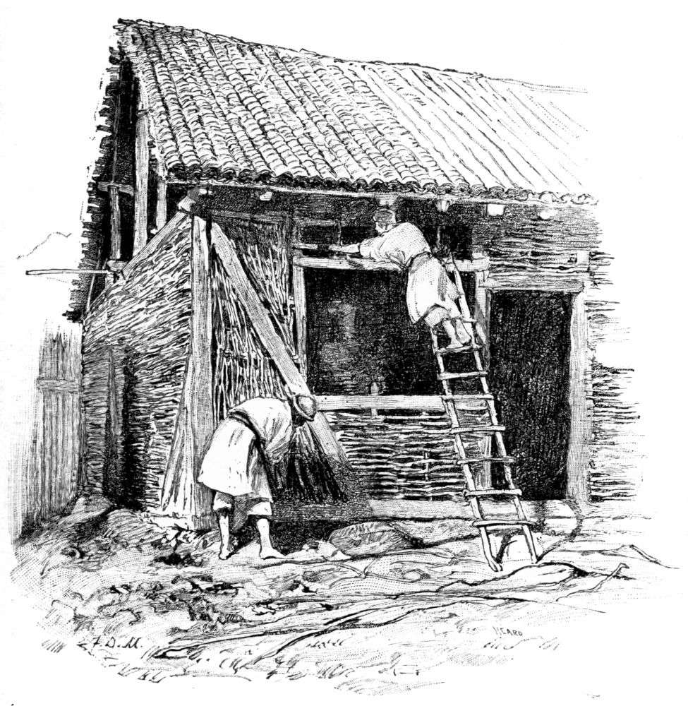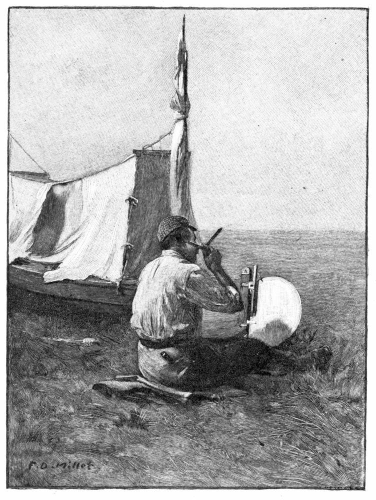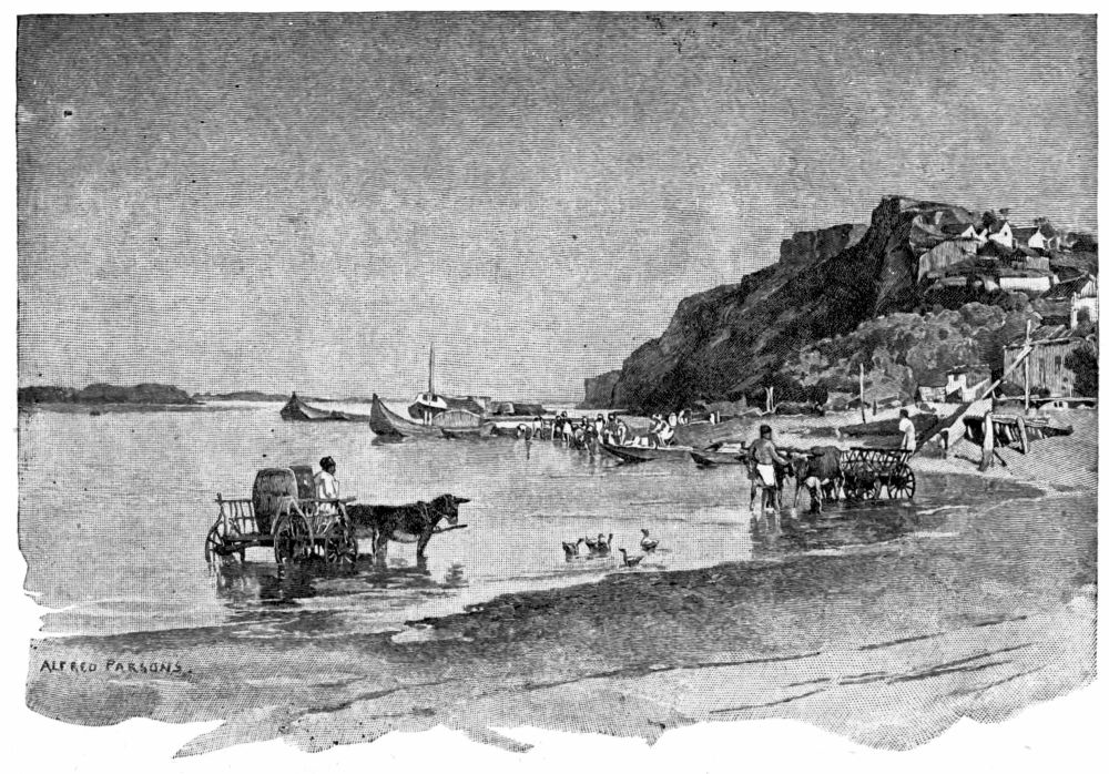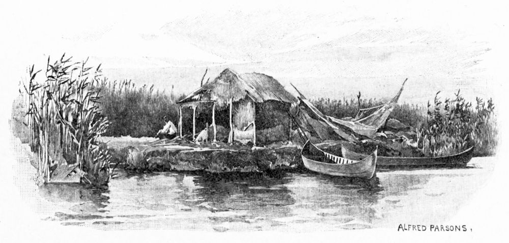 After our first introduction to real mud just below Belgrade, we had always looked forward to an ideal bivouac on a clean sandy beach on the shores of the Black Sea, where we should find drift-wood in abundance, firm smooth ground under our feet, and pure sweet air to breathe. We felt a certain elation, then, as we passed Kilia and saw before us a great flat, unbroken reed-covered marsh, in the belief that within a few hours we should probably reach this ideal camp and bid good-bye to Danube mud and its accompanying annoyances. We stole along in the shelter of a fringe of large willows on the Russian bank for about five miles. Through the trees we could see great vineyards and cultivated fields and occasional farm-houses. Peasants were at work repairing the low dikes that protect the farms from the overflow of the river, or weaving fresh rods in the wattled fences. We occasionally checked our speed to watch these operations, and if we had attempted to land would probably have been met with a prompt challenge, for all along at regular intervals the white uniforms of the sentinels could be distinguished among the undergrowth, and{309}