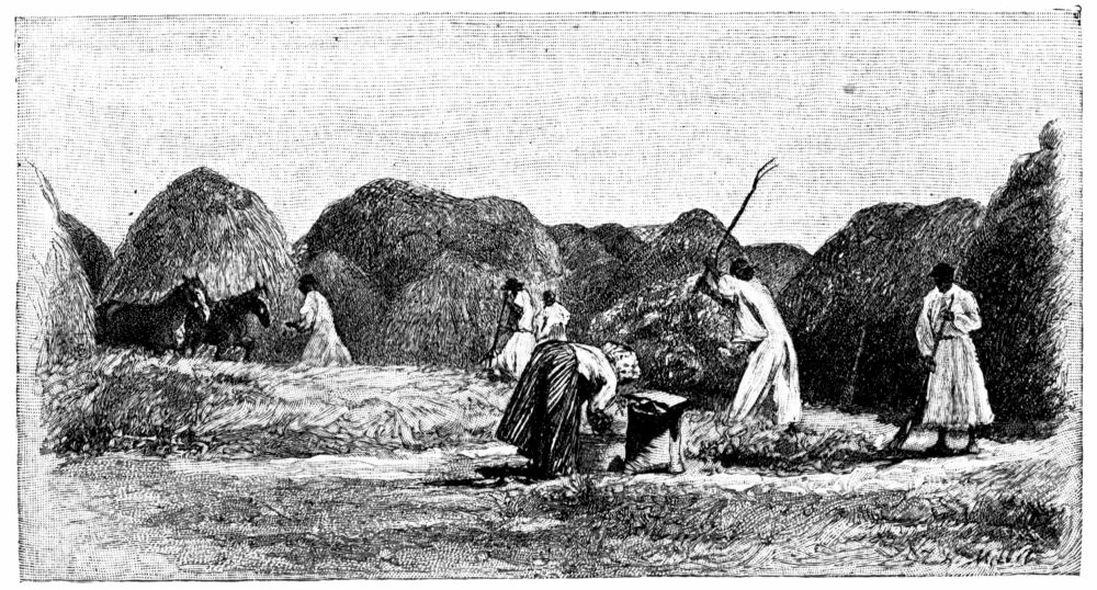distance. The peasants rattled across the{296} fields in their farm-wagons,