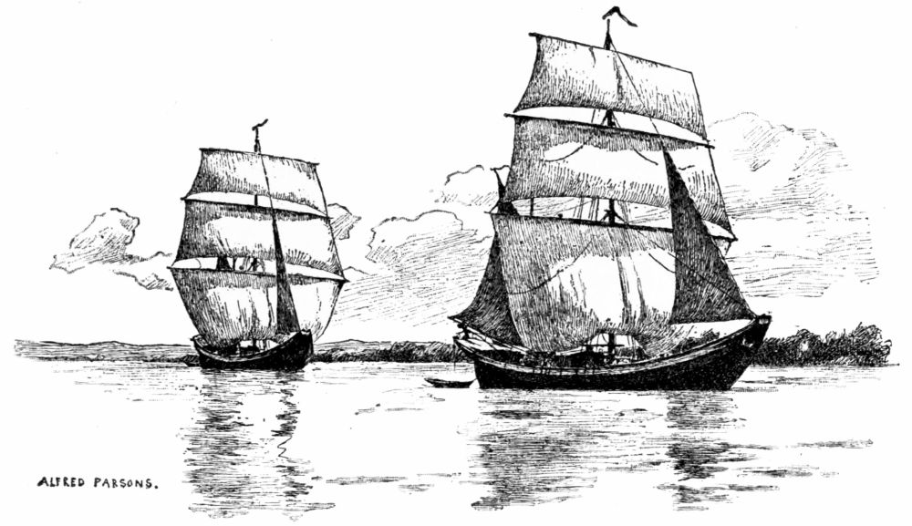 We worked our way out of the tangle of reeds and across the shallows into the open water and turned our bows to the southward, where a long sand-beach stretched away in a graceful curve. A double line of breakers followed the{327}