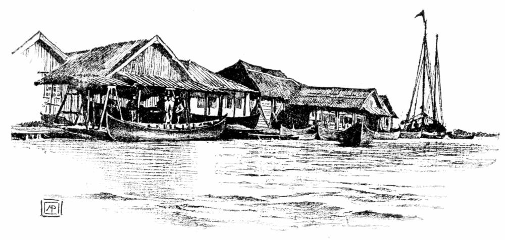 neglected landing-stages. We grounded once or twice on a mud-bank on our
