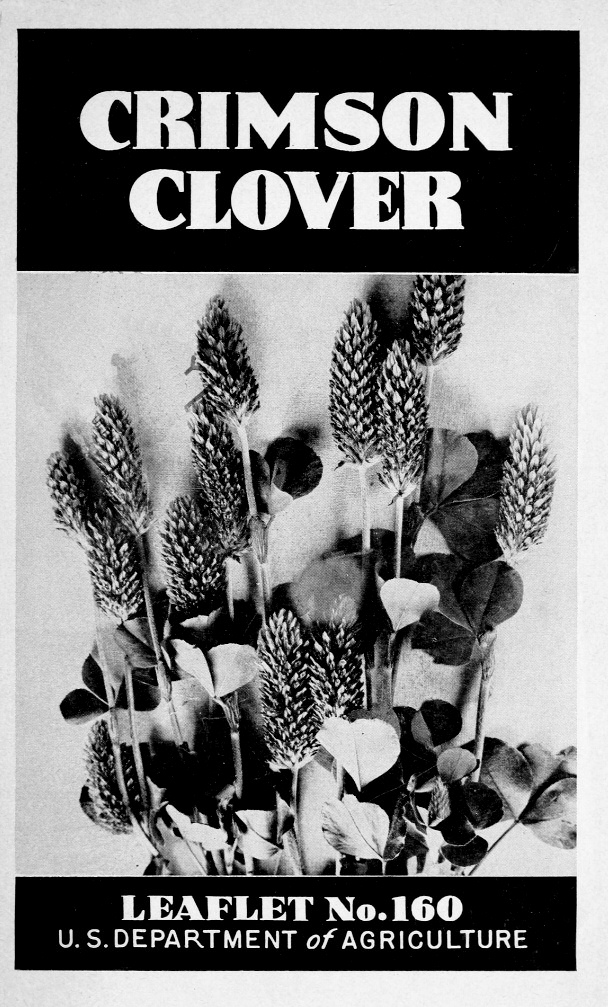 Crimson clover (Trifolium incarnatum) is the most important winter annual legume of the central section of the Eastern States. This crop can be grown over a much larger area by using seed of adapted varieties for each section, by using better cultural methods, and by fertilizing the soil (fig. 1). Besides being an excellent pasture plant and furnishing plenty of hay, it protects the soil during fall, winter, and spring, prevents soil washing, and provides green manure for soil improvement. This legume has the distinct advantage of producing large quantities of seed that can be easily harvested and sown without the use of expensive machinery. Crimson clover is a native of Europe and is widely grown in France, Hungary, and other central and southern European countries. Seed was introduced into this country as early as 1819, but it was not until 1880 that the plant became important. The acreage has been steadily increasing. During the 5-year period 1940-45 the annual purchase of seed through markets in the United States has ranged from 6 to 18 million pounds. In 1935 about 2 million pounds were used. In addition, large quantities of home-grown seed are handled from farm to farm.