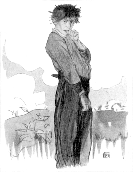 Tout à coup, derrière le laurier rose dans sa caisse verte, il aperçut un large chapeau de paille blond à coque de foulard rouge comme un gros pavot frisé. Une petite tête éveillée de brune là-dessous se levait avec des yeux de lumière noire. Très vite elle le regardait, étonnée, curieuse, comme si ses claires prunelles fraîches aussi se doutaient de ce qu’il était allé faire à la ville. Et M. Fauche reconnut la jeune fille qui l’autre jour était descendue du train avec ses cartons à chapeau.