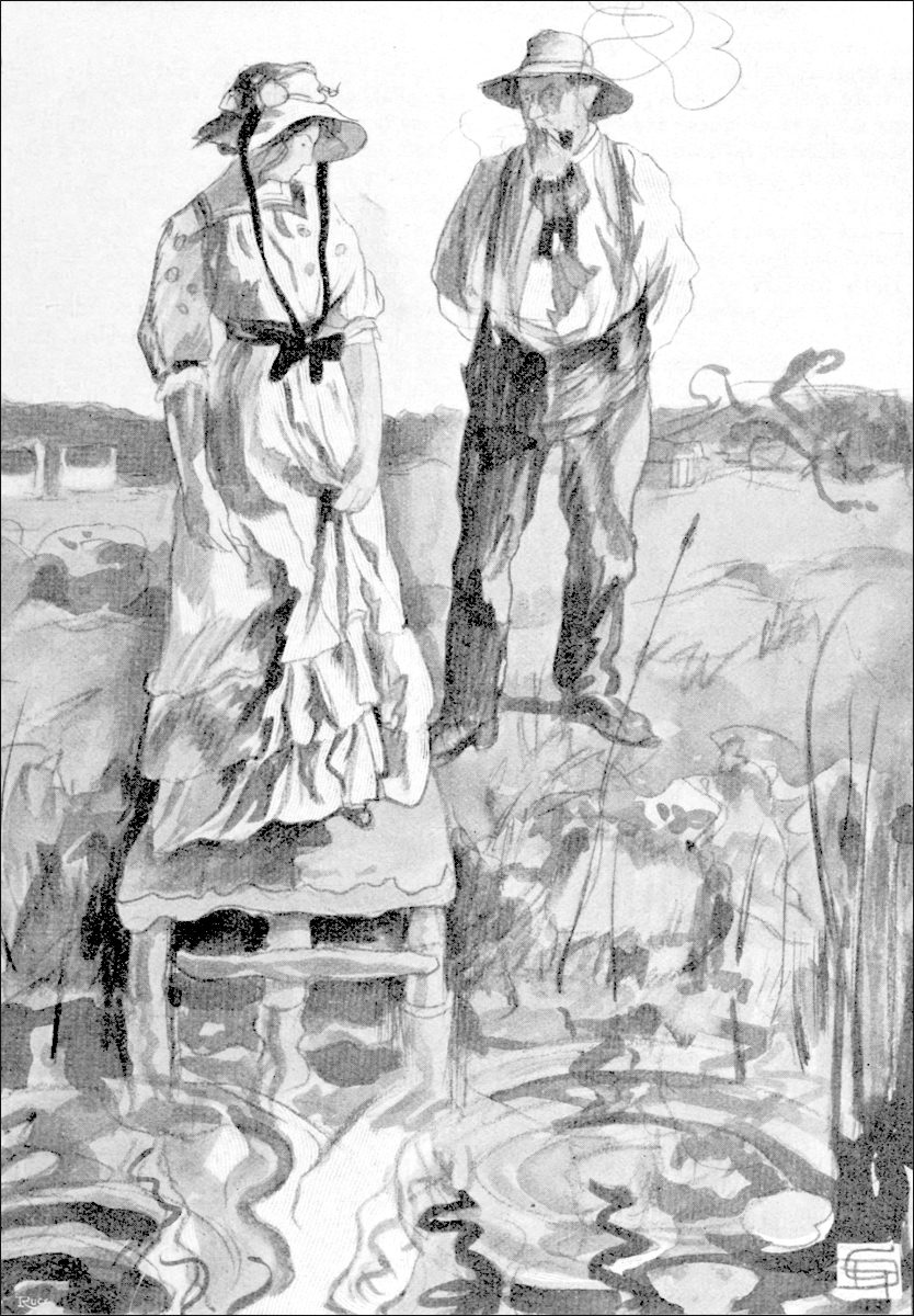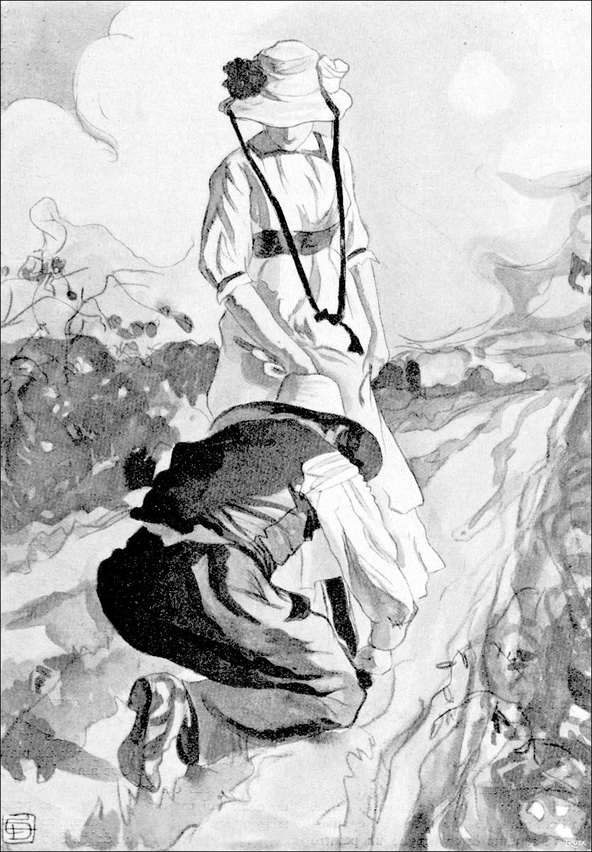 Le grand chapeau à coque de pavot vint à passer comme il coiffait de ses pots de terre ses derniers repiquages. Il l’avait vu sortir de la Truite d’or à trotte-menu, en vrai chapeau de paille qui ne tient à la tête que par une épingle et ne demande pas mieux que de s’envoler. Depuis l’autre semaine, on l’apercevait partout, rond et clair comme un hélianthe. Il grimpait les routes, filait sous bois, passait l’eau en barque, siestait dans l’île à l’ombre des peupliers. C’était un chapeau mutin, indiscipliné, tout à fait en vacances. M. Fauche maintenant savait à peu près la couleur des yeux qui étaient dessous, des yeux marron à petits semis d’or comme les cailloux rouilleux de l’eau, au passage des truites.