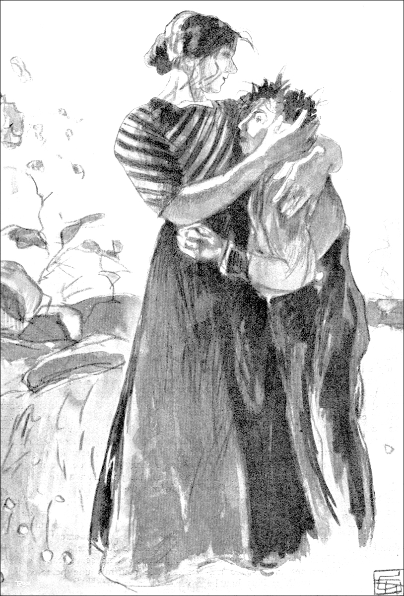 Roselei fut bien étonnée d’apprendre ainsi qu’elle allait avoir un mari avant de savoir de quelle nuance d’attachement il lui serait donné de l’aimer. Elle passa la bride de sa jument, sauta en selle et d’un trait galopa jusqu’aux Six jeunes hommes. Du dehors elle appela: