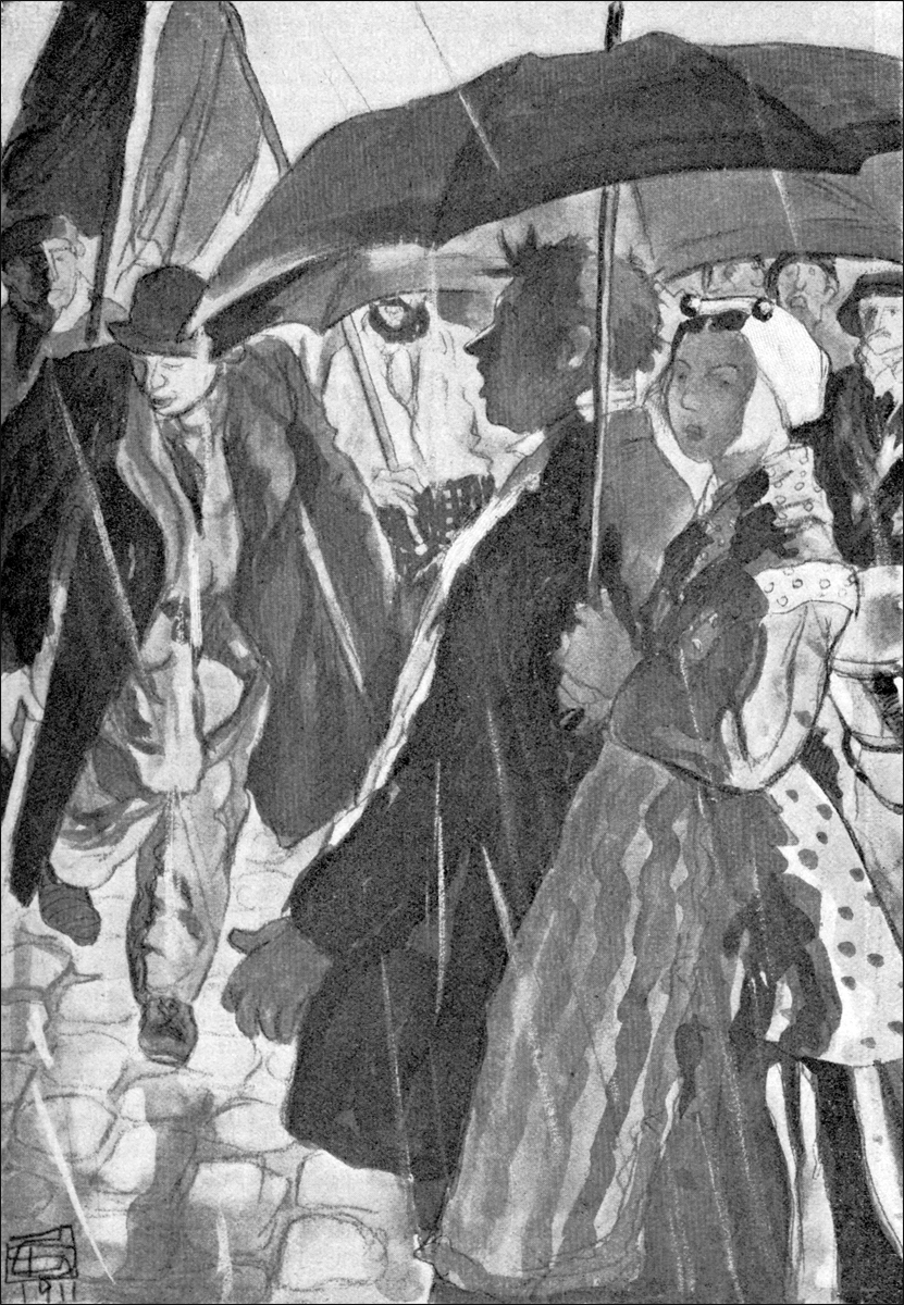 Voilà comment il se fit que six mois plus tard, quand la fille des Baesrode eut ses dix-neuf ans, elle échangea l’anneau avec le fils des Six jeunes hommes; et il y eut de grandes réjouissances dans le village et les deux villages qui joignaient le domaine. La veille et le jour du mariage on tira jusqu’à la nuit des boîtes à feu, au nombre de cent cinquante. Mme Baesrode donna un manteau de velours et d’or à Notre-Dame des Dunes qui était la patronne vénérée de la région. Un cortège de soixante cavaliers, des chapelets de fleurs autour du cou, accompagna les mariés à l’église. Cela valait bien la cavalcade en l’honneur du duc de Bourgogne d’où la rancune de la petite baronne les avait tenus écartés. Comme il n’y avait pas de pauvres dans le pays, il ne fut pas nécessaire de faire des largesses d’argent, de pain, de charbon, de vêtements. Mais il y eut un carrousel auquel tous les jeunes hommes des petites et des grandes fermes, rouges et goguelus, montés sur de puissants chevaux aux crinières entrelacées de rubans, prirent part et dont les vainqueurs obtinrent pour trophées des médailles frappées en commémoration du grand événement. Hugo Baesrode gratifia aussi les petits cultivateurs de machines agricoles qui leur allégèrent à l’avenir le prix de la main-d’œuvre. Il ouvrit, en outre, des concours entre archers, abatteurs de quilles et joueurs aux jeux de force et d’adresse. Enfin, il institua, sous forme de livrets de caisse d’épargne, cinq dots pour les cinq plus vieux serviteurs de la contrée, valets et servantes de fermes. Ce fut Thècle elle-même, avec ses quarante ans de service et ses soixante-douze années d’âge, qui, de ses antiques mains nouées par le rhumatisme, aux accents nourris d’une Brabançonne exécutée par la fanfare du village sur la place pavoisée de drapeaux et de feuillages, remit les livrets. Et puis, publiquement, devant les bourgmestres et échevins des alentours réunis et applaudissant de leurs gros battoirs, lui, le maître du pachthof, il avait embrassé ce type de la vieille humanité fidèle, donnant à entendre par là qu’il faisait d’elle l’égale des autres membres de la famille.