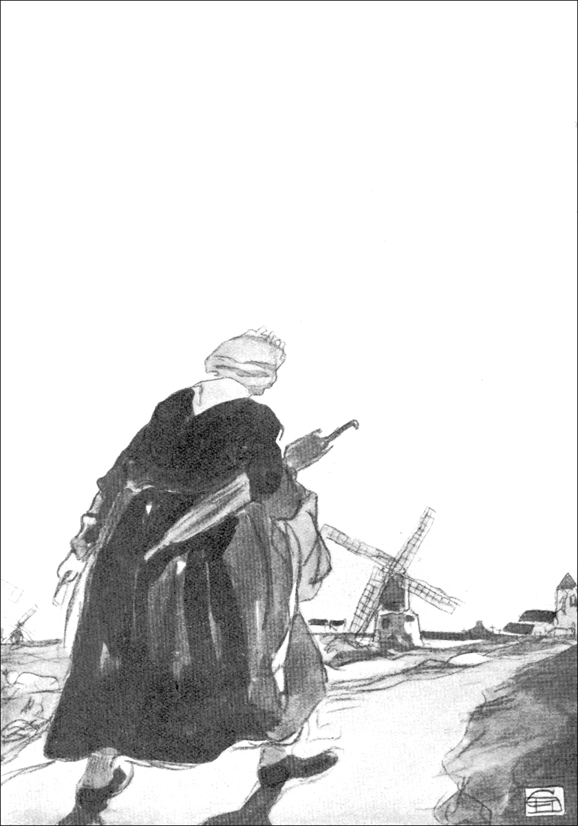 L’âme de la Flandre corne entre ses pâturages et mélodieusement bruisse en ses ruches. Quand par-dessus la barrière, quelqu’un ôte sa pipe de sa bouche et aspire longuement l’odeur de lait du troupeau ou qu’il oublie les heures à regarder aller et venir les abeilles, on voit bien que celui-là est un vrai Flamand: la terre peut bien alors travailler toute seule; le temps coule comme l’eau et le vent.
