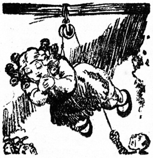 And Little Eva starts on her long trip, as yuh might say. Up and up she goes, head and feet down, them spangled wings straight up. I’ve allus had my own idea of an angel, and Susie didn’t fit that idea.