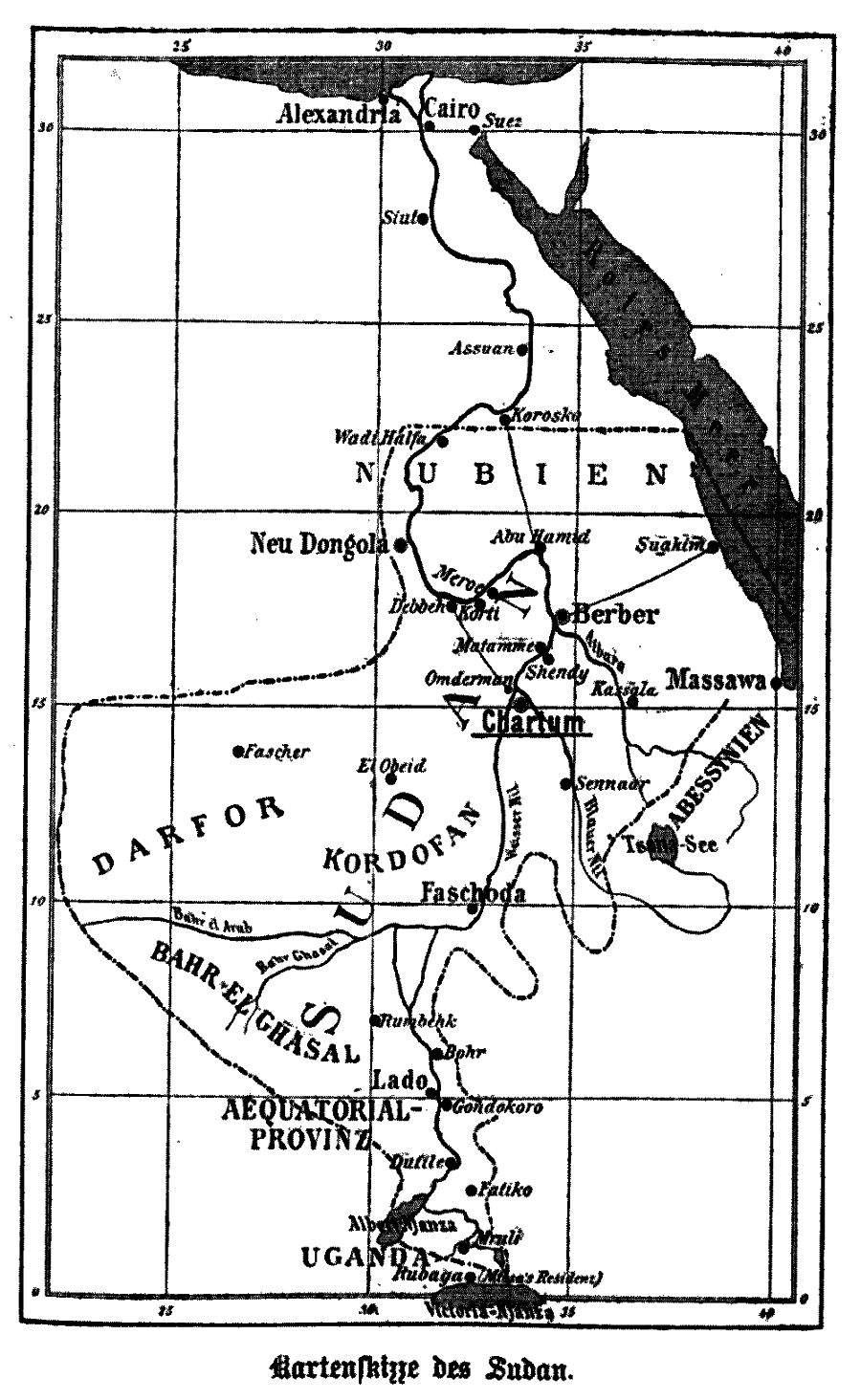 »Was der gegenwärtige Hilfszug an Menschenleben und Geldopfern kosten kann, ist nicht zu ermessen und wird vollständig zwecklos sein; die Unschlüssigkeit unserer Regierung ist an allem schuld. Hätte man von Anfang an gesagt: ›Es geht uns nichts an und wir regen keinen Finger, wenn die Besatzungen im Sudan umkommen‹, hätte man nichts gethan um Tokar zu entsetzen, hätte man mir nichts von Entsatz telegraphiert (s. Telegramm vom 5. Mai, Suakim, und vom 29. April, Massaua), statt dessen vielmehr die drei Worte:[S. 283] Hilf dir selber! dann könnte kein Mensch sich beschweren. (Gordon fügt in Parenthese bei, daß, während einerseits Baring im Namen der Regierung telegraphierte, daß britische Truppen zum Entsatz Berbers nicht bewilligt würden, der englische General Graham andererseits Befehl erhielt, den Osman Digna anzugreifen.) Aber die Regierung wollte das nicht sagen, daß sie die Besatzungen im Stich zu lassen gesonnen sei, und darum unterblieb das ›Hilf dir selber‹. Das ist's, was uns die Hände gebunden hat. Hätte ich die Flucht ergriffen, so wäre ich selbst unserer Regierung gegenüber ein Deserteur gewesen; andererseits freilich hat mein Bleiben den gegenwärtigen Hilfszug nötig gemacht. Baring meldete mir klar und deutlich den Befehl, nicht ohne spezielle Erlaubnis der Regierung an den Äquator zu gehen. (Wenn Gordon sich nämlich hatte retten wollen, so wäre das sein Ausweg gewesen.) Ich rechte durchaus nicht darüber mit der Regierung, daß sie den Sudan hat fahren lassen. Es ist ein erbärmliches Land und nicht wert, daß man es halte; aber das sage ich: die Regierung hätte im März den Mut haben sollen zu sagen: ›Hilf dir selber!‹ Damals hätte ich es thun können; jetzt bin ich Ehren halber an dies Volk gebunden, nachdem sechs Monate in unnützem Widerstand hingegangen sind ... Ich sage dies, weil niemand die Geld- und Menschenopfer dieses Hilfszugs mehr beklagt als ich, und niemand kann die Schwierigkeiten besser ermessen als ich; nach allem aber was hinter uns liegt und dank der Unschlüssigkeit unserer Regierung haben wir keine andere Wahl. Es handelt sich für uns jetzt darum, wie wir mit unserer Ehre und mit möglichst geringen Opfern am besten davon kommen. Gebt das Land den Türken, das ist die einzige Lösung der Frage. Hoffentlich denkt niemand, daß ich aus Eigensinn Schwierigkeiten mache; wollte Gott, ich wäre glücklich fort von hier, wo ich seit Februar keine ruhige Stunde gehabt habe! ... Bis vor kurzem waren wir völlig im dunkeln, ob die Regierung die Besatzungen im Stich lassen will oder nicht. Hätte ich meinen Posten verlassen, so hätte man mich als Deserteur darum zur Verantwortung ziehen können, weil ich die Dampfer und Kriegsvorräte in des Mahdi Hand hätte fallen lassen. Denn wenn ich Reißaus nehme, so dauerte es keine fünf Tage und der Mahdi wäre hier ... Ich wiederhole, die englische Regierung wäre, sofern es mich betrifft, aller Verantwortung ledig, hätte man mir nur den Entschluß übermittelt: ›Hilf dir selber, wir lassen die Besatzungen im Stich.‹ Dann hätte ich[S. 284] gewußt, woran ich bin, hätte den Leuten sagen können, daß auf Hilfe nicht zu rechnen ist, und hätte keine sechs Wochen gebraucht, um den Äquator zu erreichen. Und ich hätte das in Ehren thun können; denn sobald es einmal feststand, daß man uns im Stich ließ, mußte mein Hierbleiben darauf hinauslaufen, daß ich mit den Khartumern eingeschlossen würde, was ihre Lage nicht bessern konnte, im Gegenteil den Mahdi nur um so mehr aufbringen mußte.«