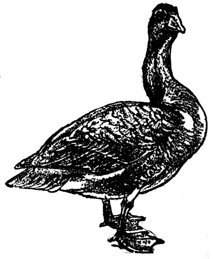 Soon he learned to eat with the chickens, and when the bran mash was spread for them in a long, wooden trough, Skygak would be there before the bucket was emptied. Then, as the hens came flocking around, the gull would spread his magnificent wings, 25open his huge beak to its widest extent, and scream shrilly and fiercely, laying about him with his yellow beak like a warrior swinging a deadly sword. The startled poultry, unused to this changeling of the sea and sky, would scurry away with distressed and frightened cackles, and Skygak would eat his fill at the trough, pausing occasionally to administer punishment to any daring cockerel who ventured too near. Many a bunch of feathers have I seen hanging from his bill, like a scalplock hung from the belt of an Indian brave, mute witness to a battle of brief but bloody duration.