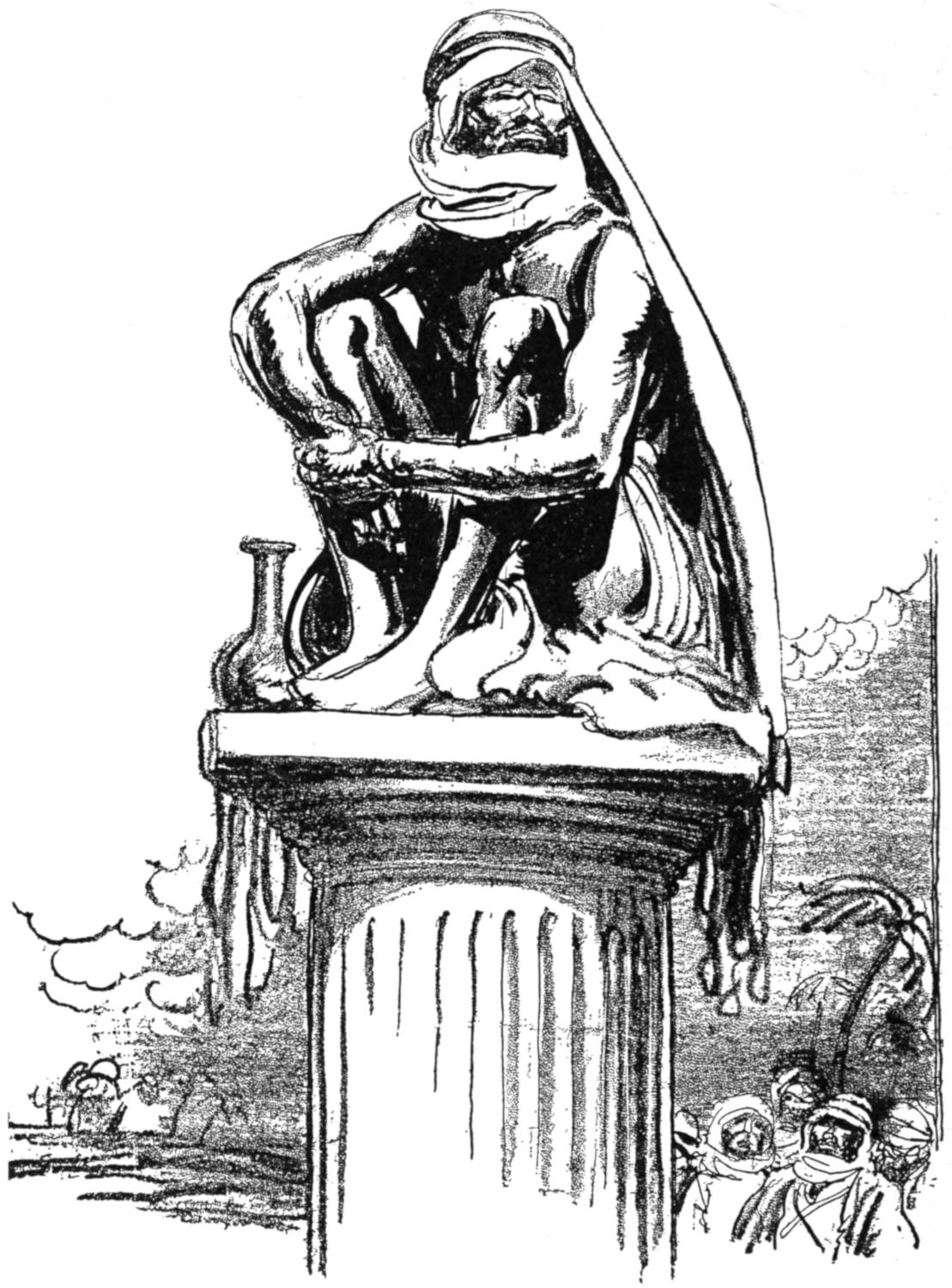 Buhram, who gleefully murdered 931 men, was a member of the Thuggee sect—a gang of professional murderers who flourished in India in 1830 before the English suppressed them. The Thugs were worshippers of Bhowanee; and to this god they sacrificed anybody that came handy; but they were careful to keep the dead man’s things themselves as they believed the god cared only for the corpse. Men were initiated into this sect with solemn ceremonies. Then they were taught how to strangle a person with the sacred choke-cloth, but were not allowed to perform officially with it until after long practice. It required practice to choke a man expertly. Then the job was done instantaneously; the cloth was whipped around the victim’s neck, there was a sudden twist, and the head fell silently forward, the eyes starting from the sockets; and all was over.