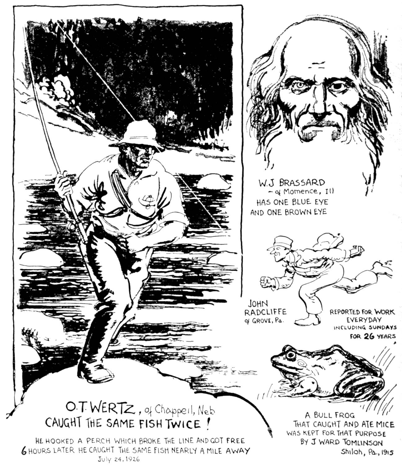 I have been drawing the “Believe It or Not” pictures for eight years and find that it grows easier each day. There is no danger of running out of material (as some readers think): the supply is inexhaustible.